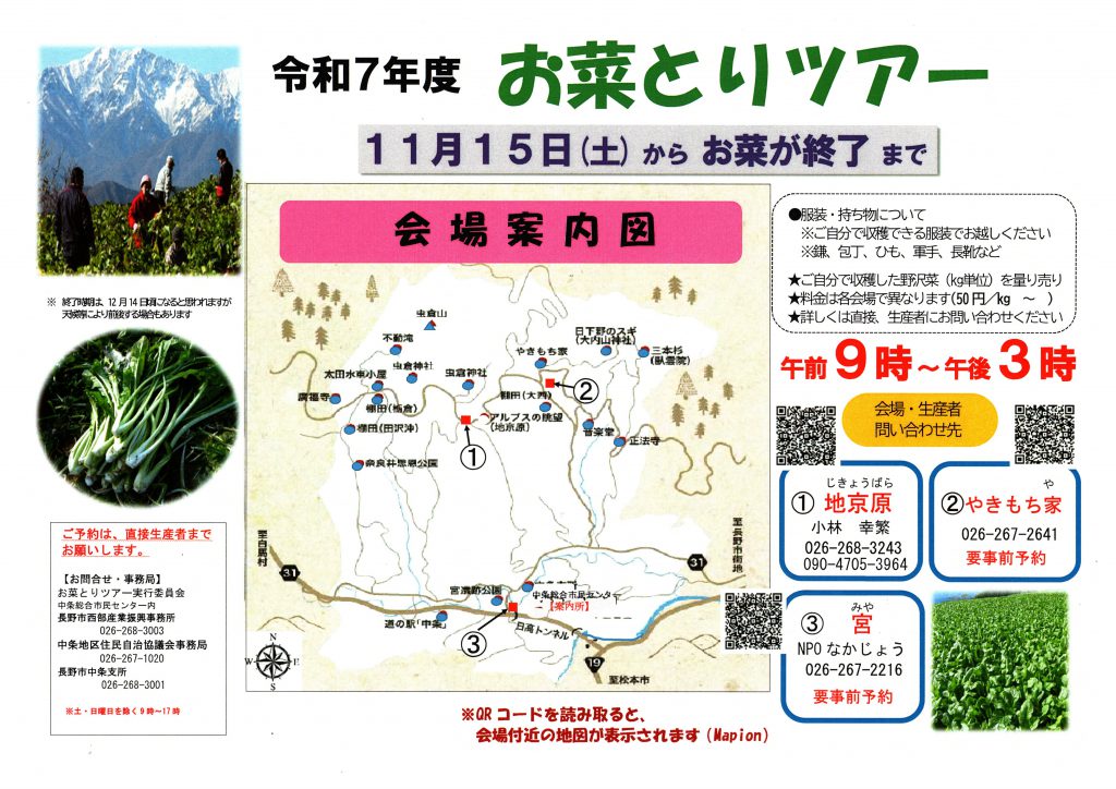 中条地区の秋の恒例イベント「お菜とりツアー」が今年も11月15日(土)から始まります。今年も良いお菜が沢山育っています。大勢の皆様のご来場をお待ちしております。